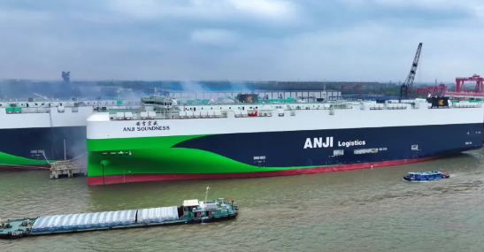 招商局金陵船舶(江苏)有限公司建造的9500车级大型甲醇预留汽车运输船“安吉宏盛”轮正式命名交付并开启首航,远赴欧洲。